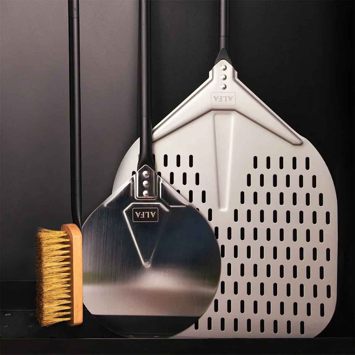 Alfa Refrattari srl Pizza-Schaufel Set (Schaufel Ø 40 cm + Wender + Bürste)