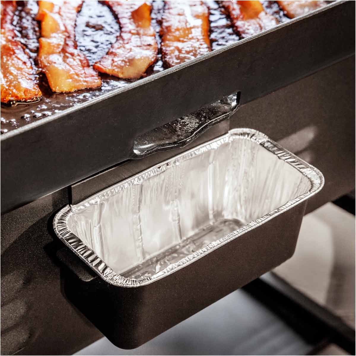 Die Auffangschalen bestehen aus robuster Aluminiumfolie und fassen ca. 800 ml. Sie passen exakt in alle Blackstone Rear Grease Griddles, jedoch nicht in Modelle der E-Serie oder Camping-Griddles.