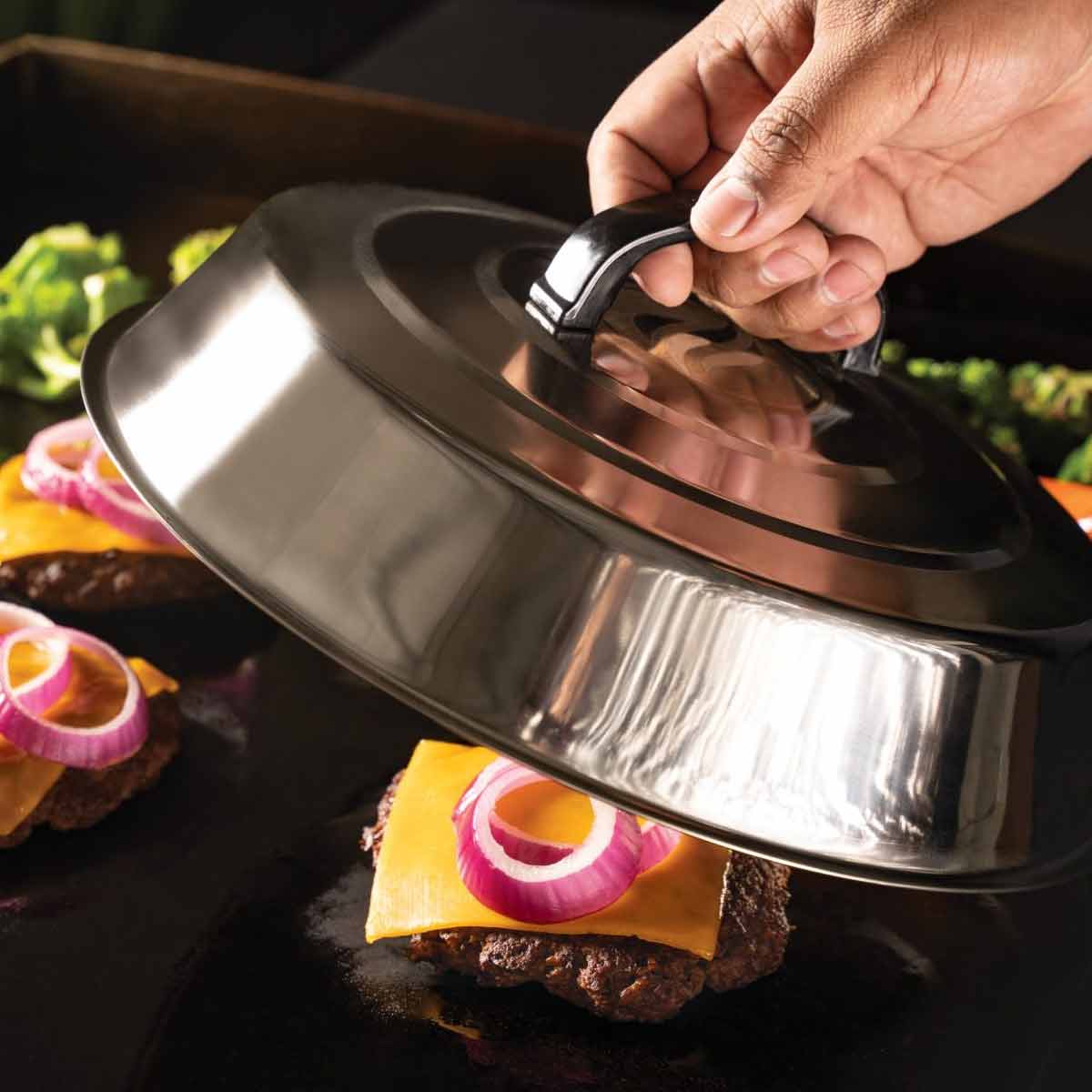 Die mitgelieferte Garhaube ist perfekt, um Käse gleichmäßig zum Schmelzen zu bringen oder Gemüse schonend zu dämpfen. So entstehen im Handumdrehen saftige, aromatische Burger und kreative Sandwich-Kombinationen.