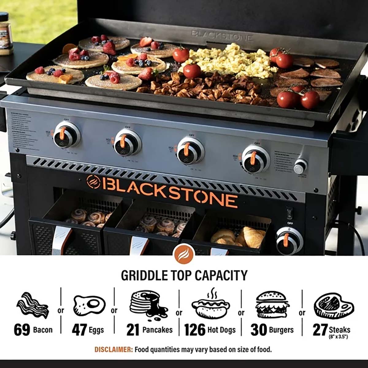 Erlebt mit der Blackstone Plancha Grill 36" mit Airfryer eine neue Dimension des Outdoor-Cookings. Dieses Multitalent ermöglicht Euch nicht nur das Grillen, sondern auch das Backen, Anbraten, Sautieren und sogar Frittieren. Die großzügige 756 Quadratzoll Kochfläche bietet ausreichend Platz, um selbst für die größten Feste zu kochen. Freut Euch auf eine Grill-Erfahrung, die bereits beim Auspacken des Gerätes für Vorfreude sorgt. Mit einer Vielzahl von Funktionen, von einer schützenden Haube bis zu nützlichen Zubehörhaken, vereint dieser Grill Innovation mit Komfort.Blackstone Plancha Grill 36" mit Airfryer