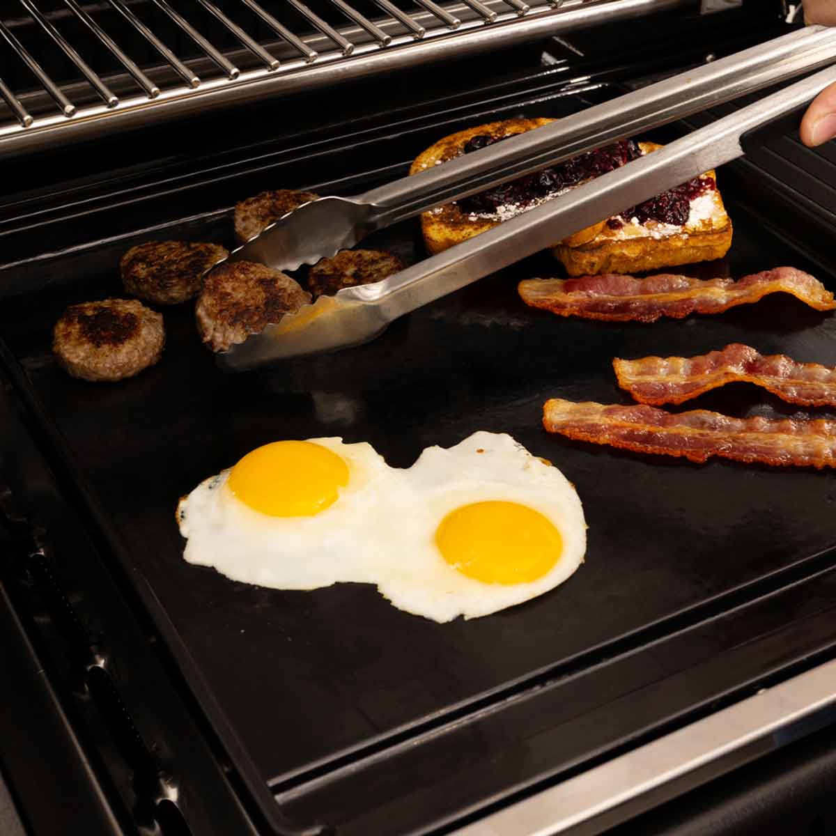 Die Broil King Plancha für Baron und Crown ist Euer Multitalent am Grill. Sie ersetzt ganz einfach drei Grillroste und verwandelt Euren Gasgrill in eine vielseitige Koch- und BBQ Station. Von Steaks und Burgern bis hin zu Spiegeleiern, Pancakes, Fisch oder Gemüse – mit der massiven Gussplatte gelingt alles mit Leichtigkeit und perfekter Hitzeverteilung.