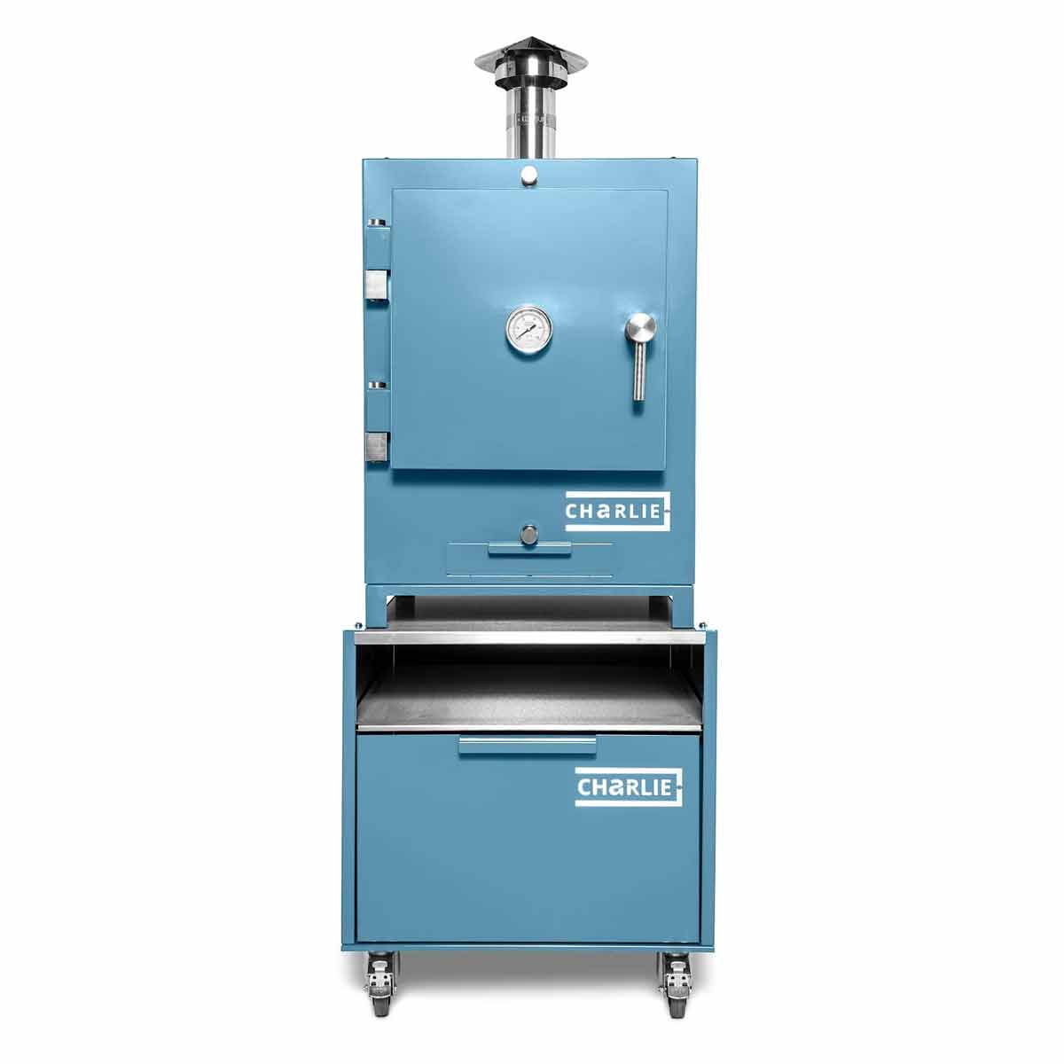 Wie alle Modelle der Marke Charlie Oven ist auch der Cheeky Charlie ein echtes Designobjekt. Seine klare Linienführung, das wetterfeste pulverbeschichtete Stahlgehäuse und die markante Front machen ihn zum Hingucker jeder Outdoor-Küche.
