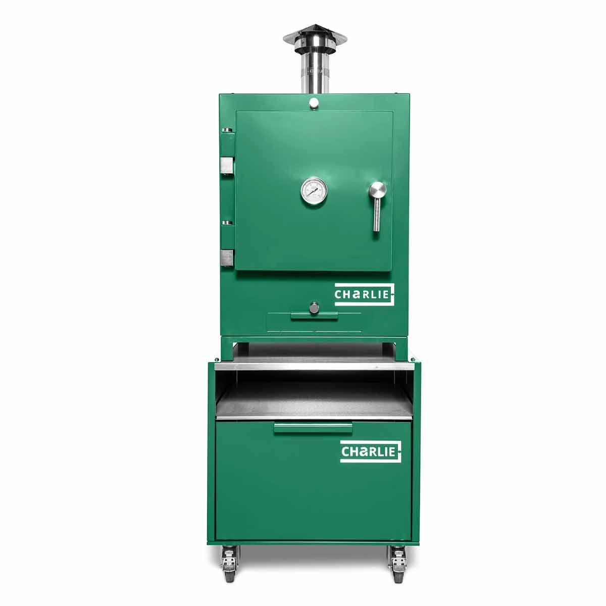 Wie alle Modelle der Marke Charlie Oven ist auch der Cheeky Charlie ein echtes Designobjekt. Seine klare Linienführung, das wetterfeste pulverbeschichtete Stahlgehäuse und die markante Front machen ihn zum Hingucker jeder Outdoor-Küche.