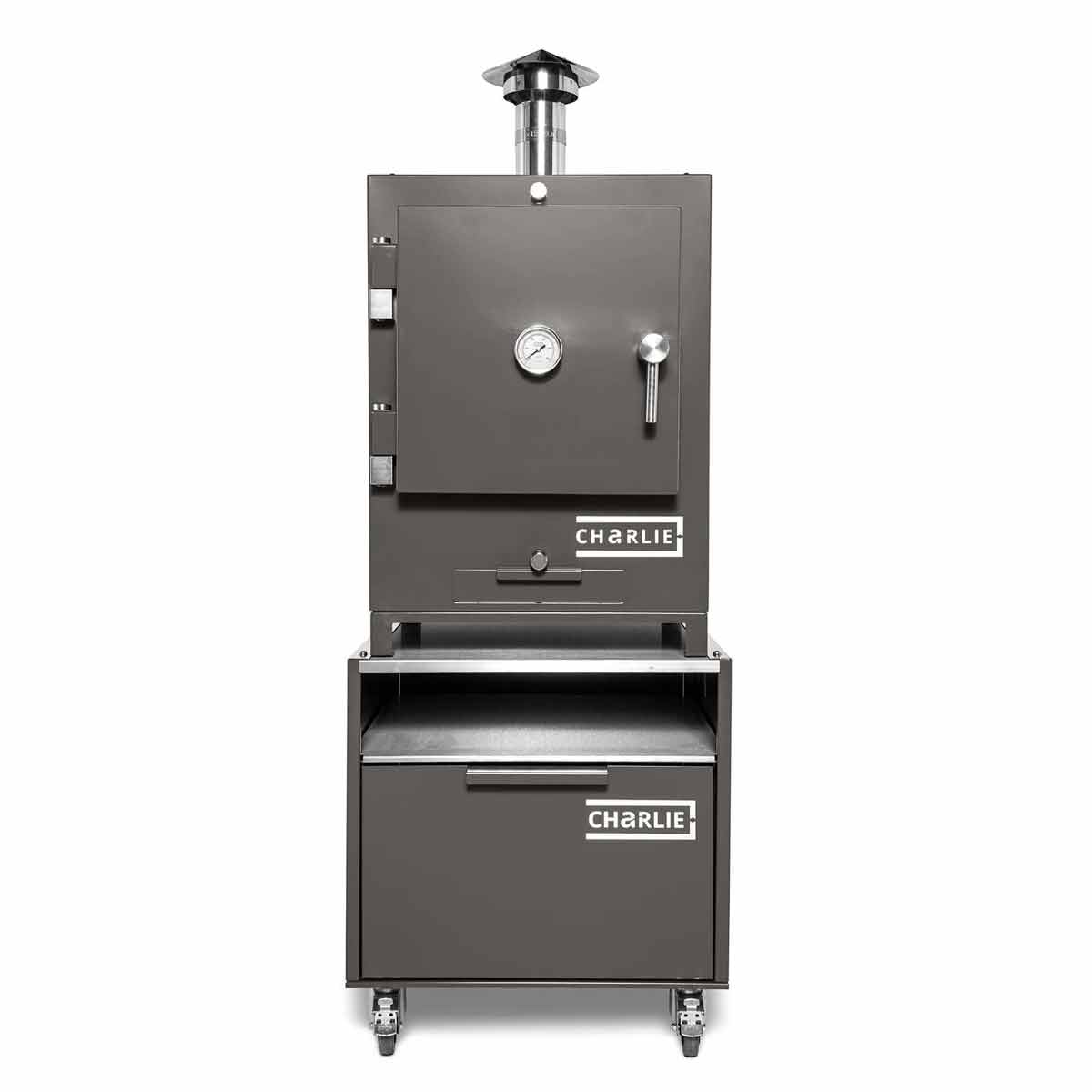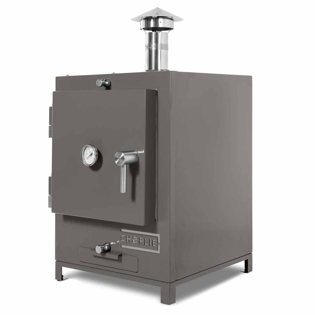 Wie alle Modelle der Marke Charlie Oven ist auch der Cheeky Charlie ein echtes Designobjekt. Seine klare Linienführung, das wetterfeste pulverbeschichtete Stahlgehäuse und die markante Front machen ihn zum Hingucker jeder Outdoor-Küche.
