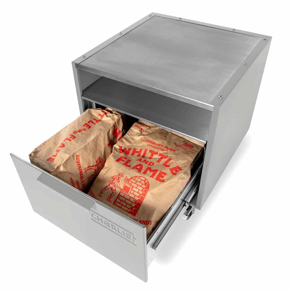 Langlebig, massiv, zuverlässig: Der Unterwagen setzt – typisch Charlie – auf eine hochwertige Edelstahlkonstruktion. Die Edelstahl-Arbeitsfläche trägt Euren Ofen sicher und absolut stabil, während die tiefe Edelstahl-Ablage darunter zusätzlichen Platz für Zubehör und Tools bietet.