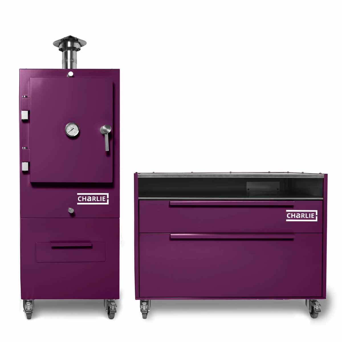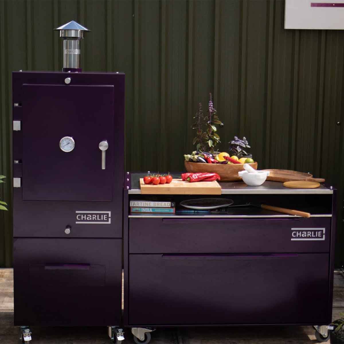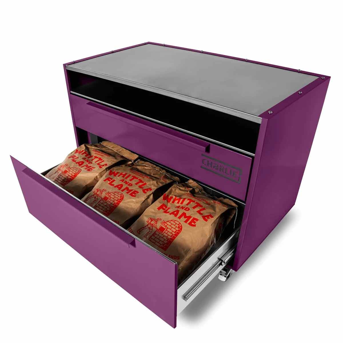 Mit seiner eleganten pulverbeschichteten Außenhülle in den typischen Charlie-Farben lässt er sich perfekt mit allen Charlie Oven Modellen kombinieren – ob Classic, Professional oder Cheeky Charlie.