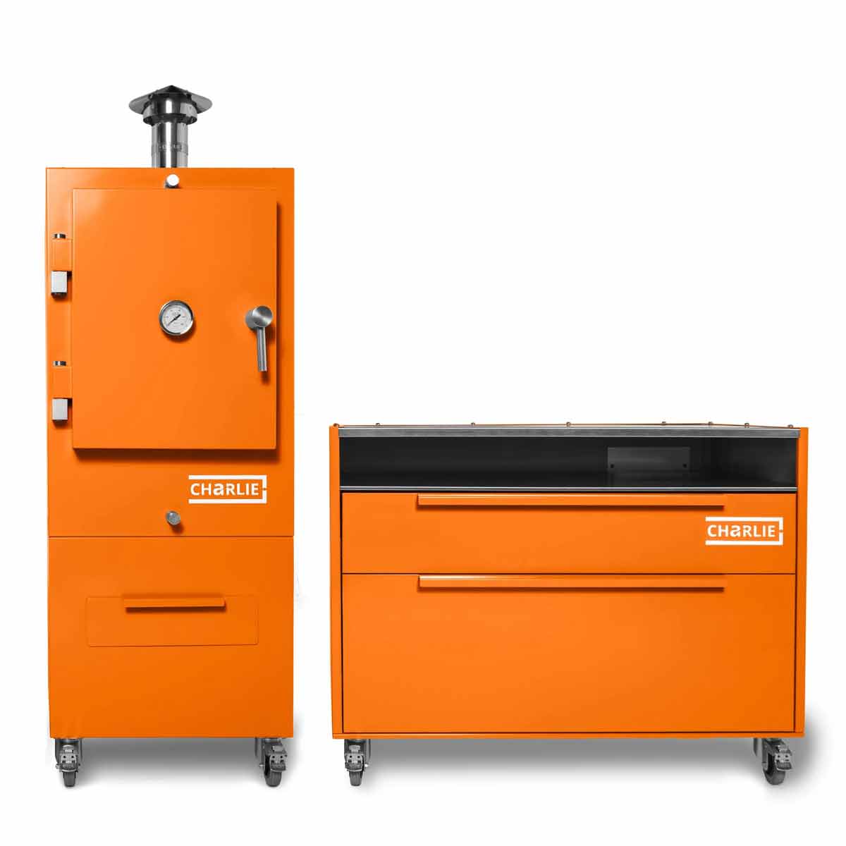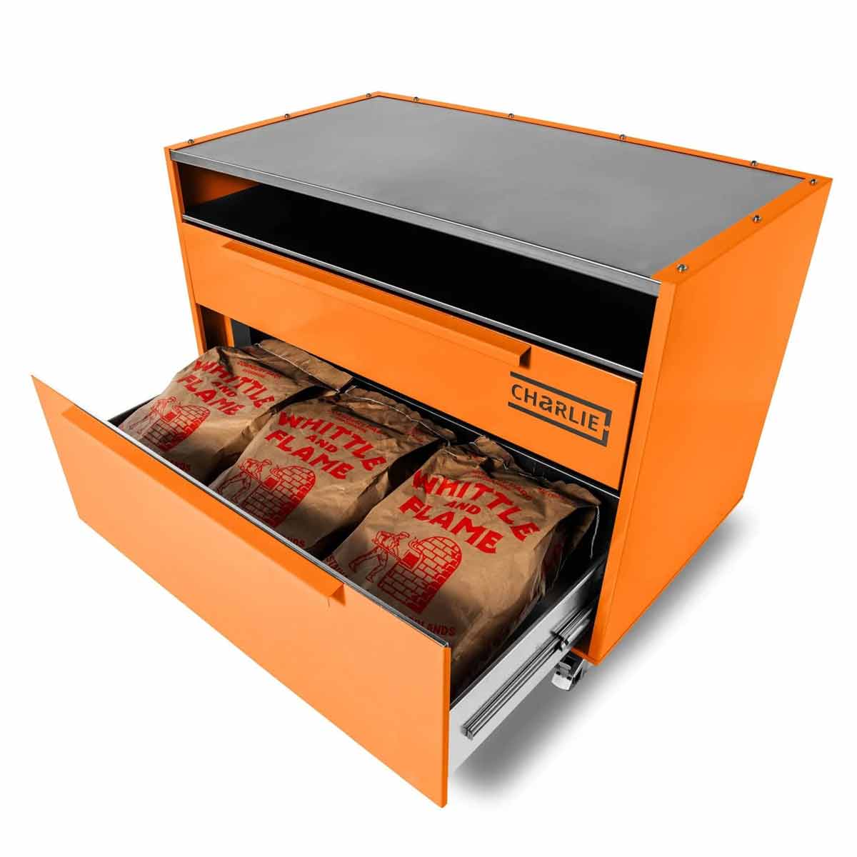 Mit seiner eleganten pulverbeschichteten Außenhülle in den typischen Charlie-Farben lässt er sich perfekt mit allen Charlie Oven Modellen kombinieren – ob Classic, Professional oder Cheeky Charlie.