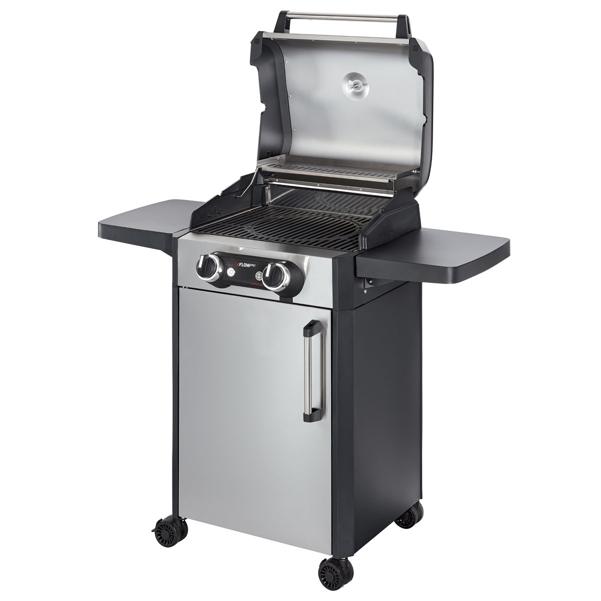 Dabei macht er sich durch abklappbare Seitentische noch schlanker, zusätzlich lässt sich im geräumigen Unterschrank das benötigte Grillzubehör platzsparend verstauen. Aluguss-Seitenteile und hochwertiger Edelstahl sorgen für Stabilität und lange Lebensdauer.