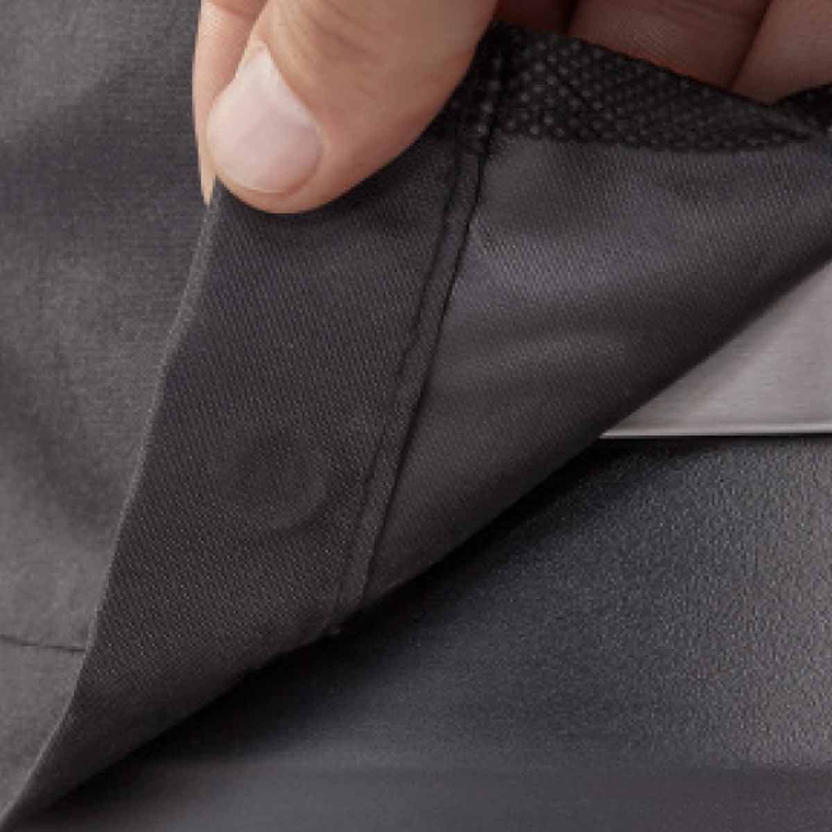 Ein besonderes Highlight der Premium-Haube sind die integrierten Magnete im Saum. Sie halten die Schutzhülle auch bei Wind sicher an ihrem Platz – ganz ohne zusätzliche Spanngurte oder Kordeln.