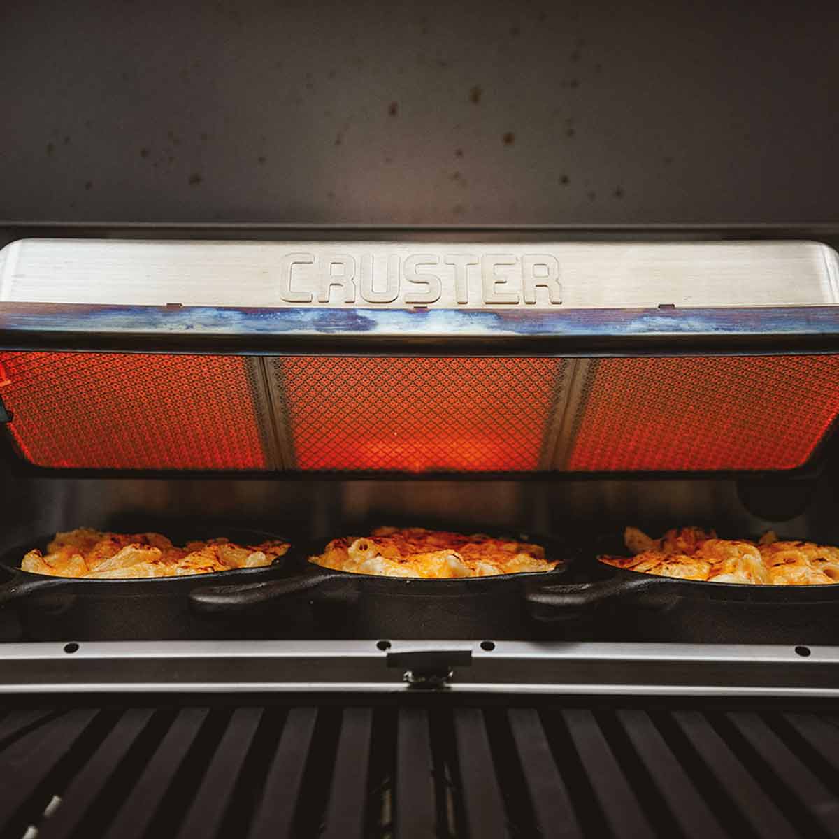Der speziell entwickelte Slider-Grillrost erlaubt es, das Grillgut bequem unter den Cruster zu schieben – perfekt für maximale Kontrolle beim Überbacken.