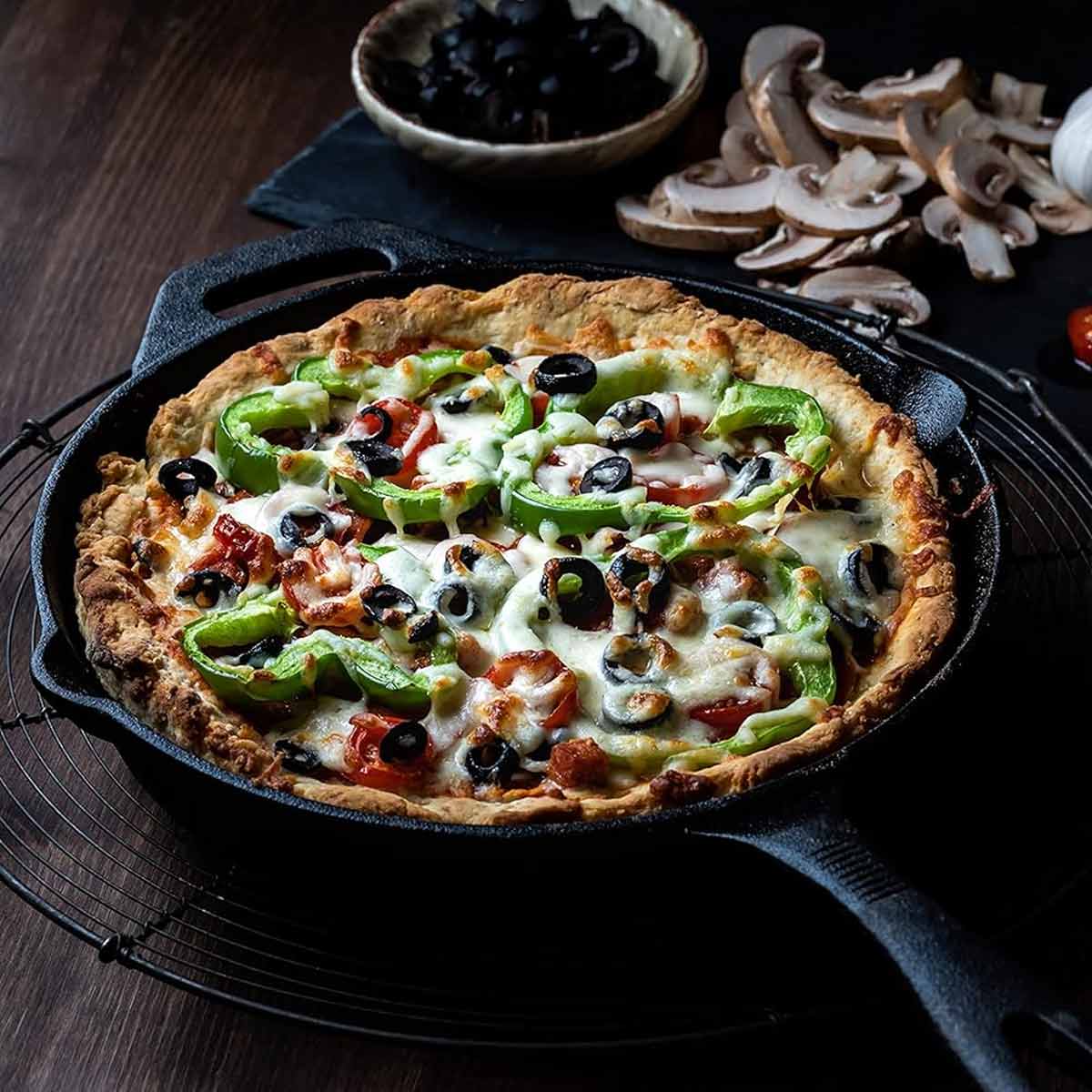 Dank des hohen Rands eignet sich die Pfanne auch hervorragend zum Schmoren, Backen oder Frittieren. Ob deftige Eintöpfe, saftige Steaks oder süße Desserts – diese Pfanne eröffnet Euch unzählige Möglichkeiten in Küche und Outdoor-Küche.
