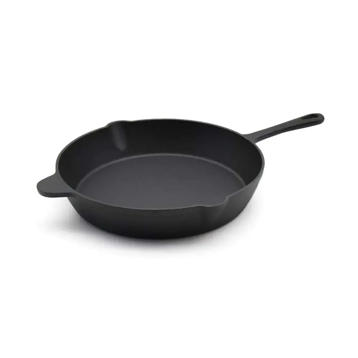 Mit zwei seitlichen Ausgießhilfen, einem praktischen Gegengriff und dem langen Stielgriff lässt sich die Pfanne sicher und komfortabel handhaben – ideal auch zum Servieren direkt vom Grill oder Herd.