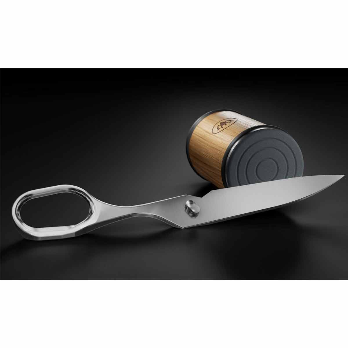 Mit dem gefederteren Schnellverschluss löst Ihr die Schere mit einem kurzen Widerstand und trennt beide Klingen komplett werkzeuglos. Das macht sowohl Reinigung als auch das Schärfen extrem komfortabel.