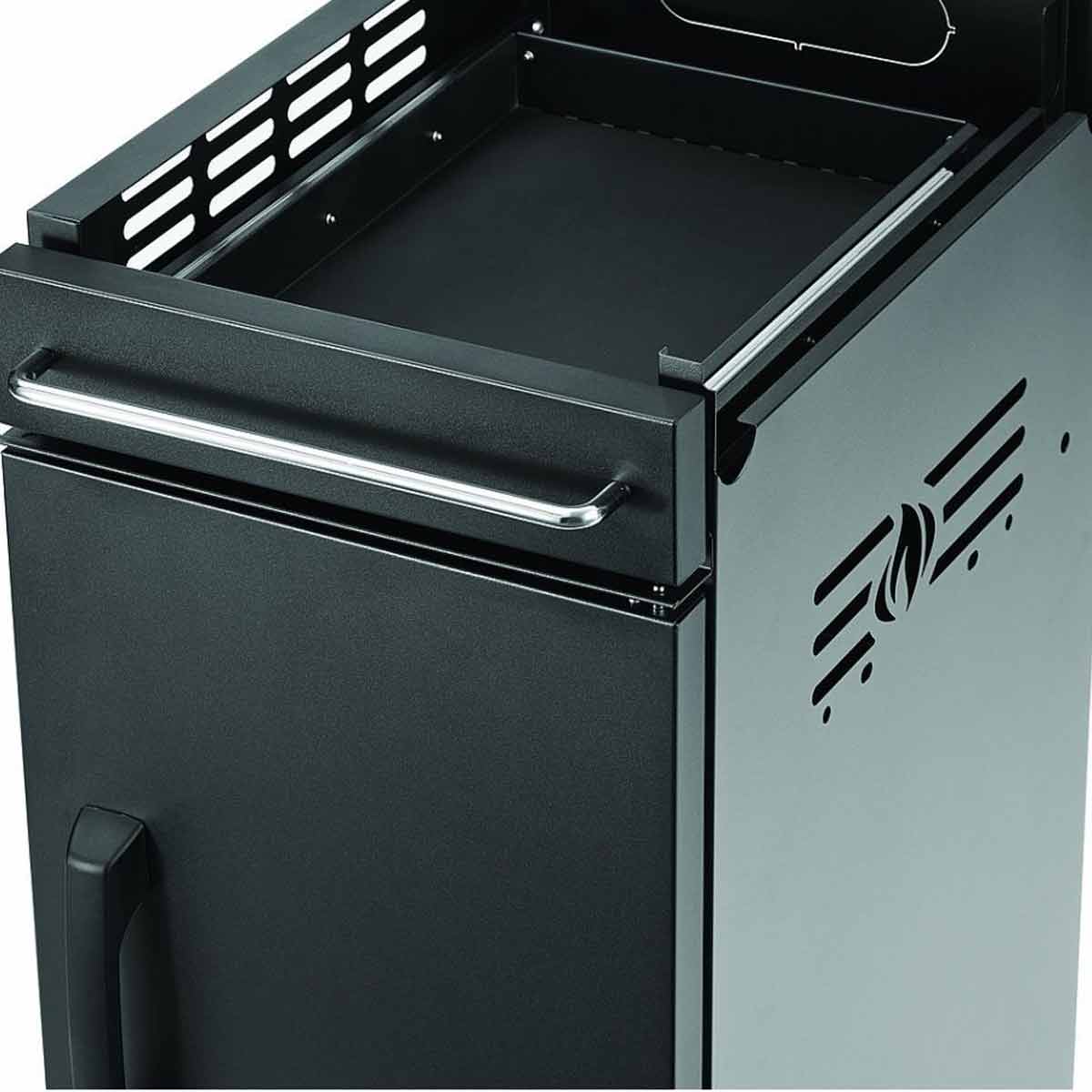Die integrierte Schublade bietet schnellen Zugriff auf häufig genutzte Grillutensilien, Gewürze oder Accessoires, während der Griff zugleich als Handtuchhalter dient – praktisch und platzsparend zugleich.