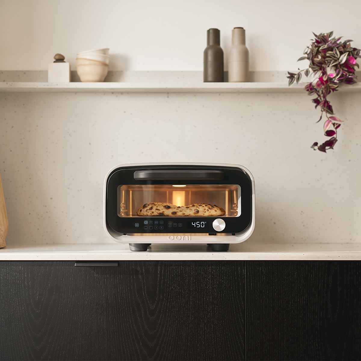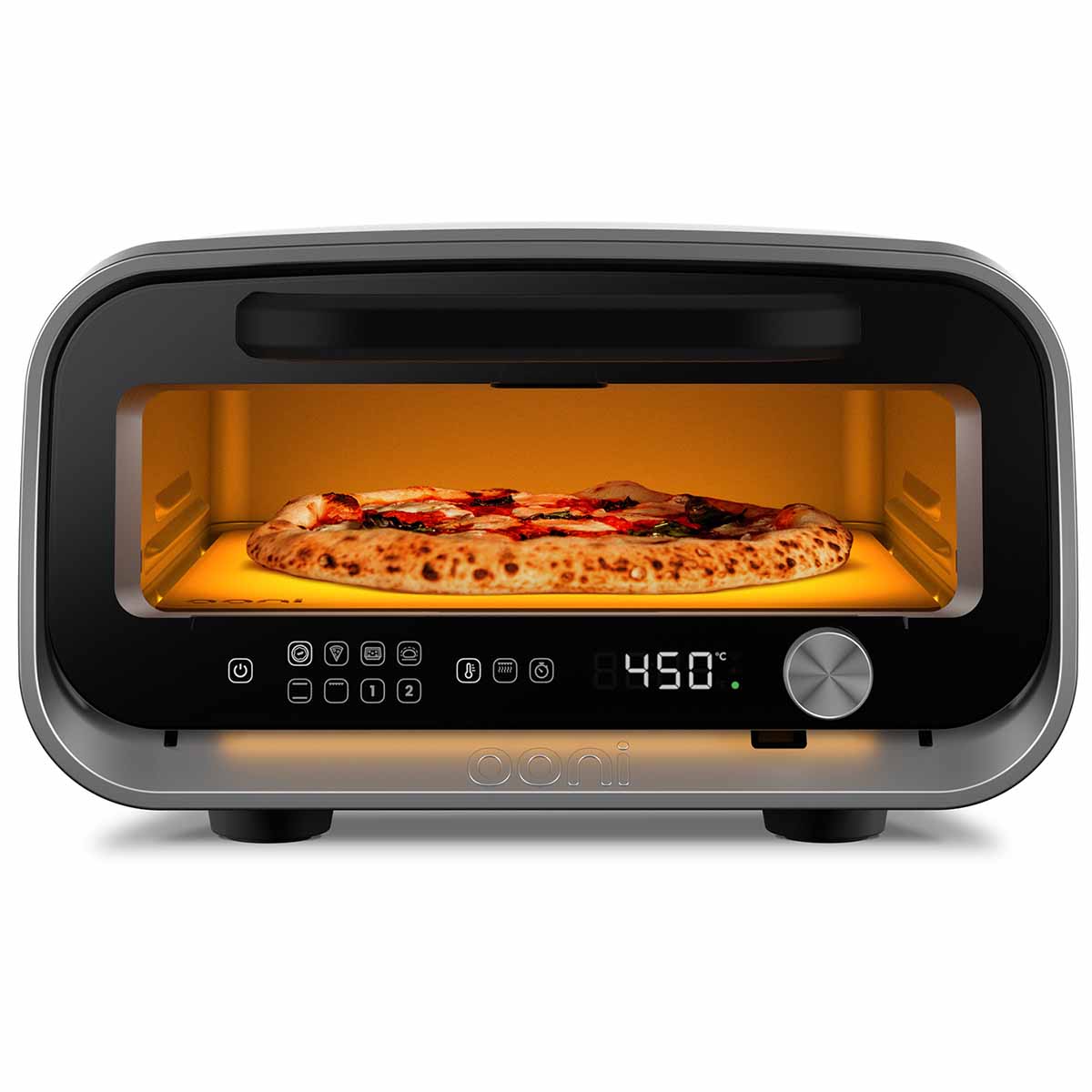 Der Ooni Volt 2 erreicht Temperaturen von bis zu 450 °C – und das in kürzester Zeit. Damit gelingt Euch die perfekte neapolitanische Pizza mit luftigem Rand und knusprigem Boden in gerade einmal 90 Sekunden. Drei leistungsstarke Heizspiralen sorgen für gleichmäßige Hitzeverteilung und geben Euch volle Kontrolle über Ober- und Unterhitze.