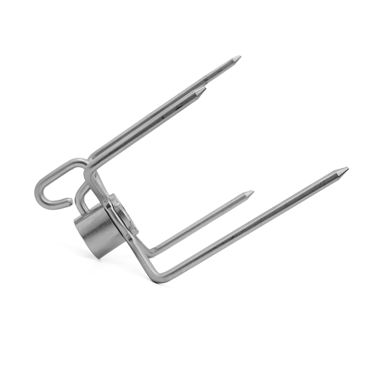 Die Edelstahl Forken von SANTOS sind für Drehspieße sämtlicher Marken wie z.B. Napoleon, Weber, SANTOS und Broil King, mit einem maximalen Durchmesser von 14 mm geeignet.Fleischklammer Set für mehr Sicherheit beim Grillen mit Drehspieß