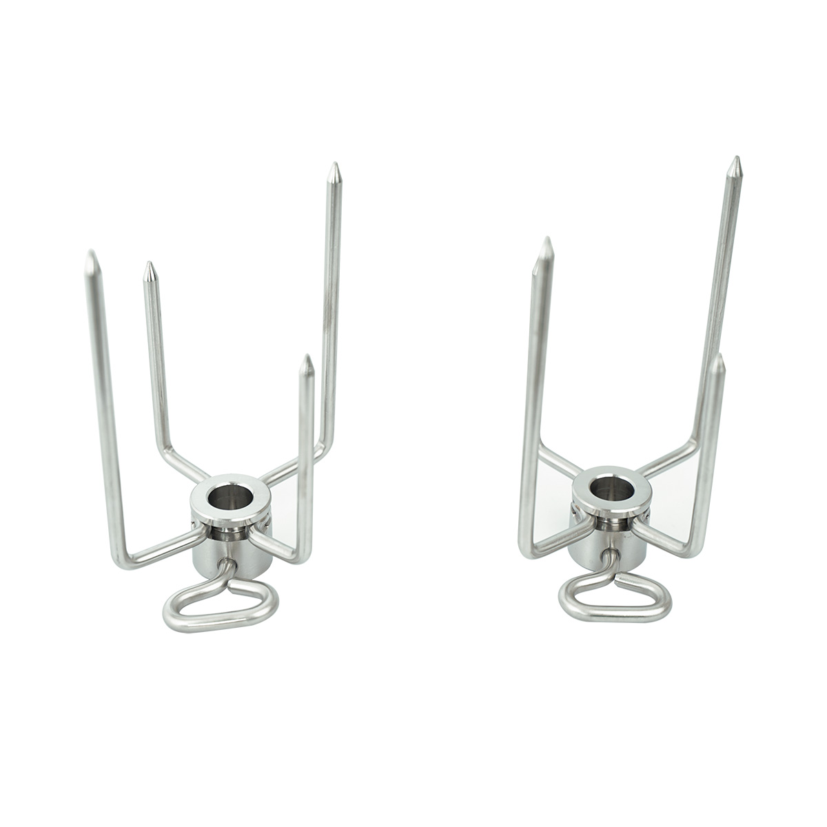 Drehspieß einlegen – fertig: Mit der von SANTOS entwickelten magnetischen Halterung ist die Handhabung der Rotisserie maximal komfortabel. Sie hält den Spießstab aus magnetischem Edelstahl fest in der Halterung der Motoreinheit, sodass keine weitere Fixierung notwendig ist. Der in der Halterung verbaute Neodym-Magnet ist ein leistungsstarker Permanentmagnet. Die auch als “Supermagnete” bezeichneten Neodym-Magnete haben eine sehr große Haftkraft bei verhältnismäßig kleinem Volumen, die auch über Jahre hinweg nicht nachlässt – beste Voraussetzung, um Euch zuverlässig über viele Jahre das Rotisserie Grillen zu verschönern.Drehspieß mit gerundeten Auflagestellen