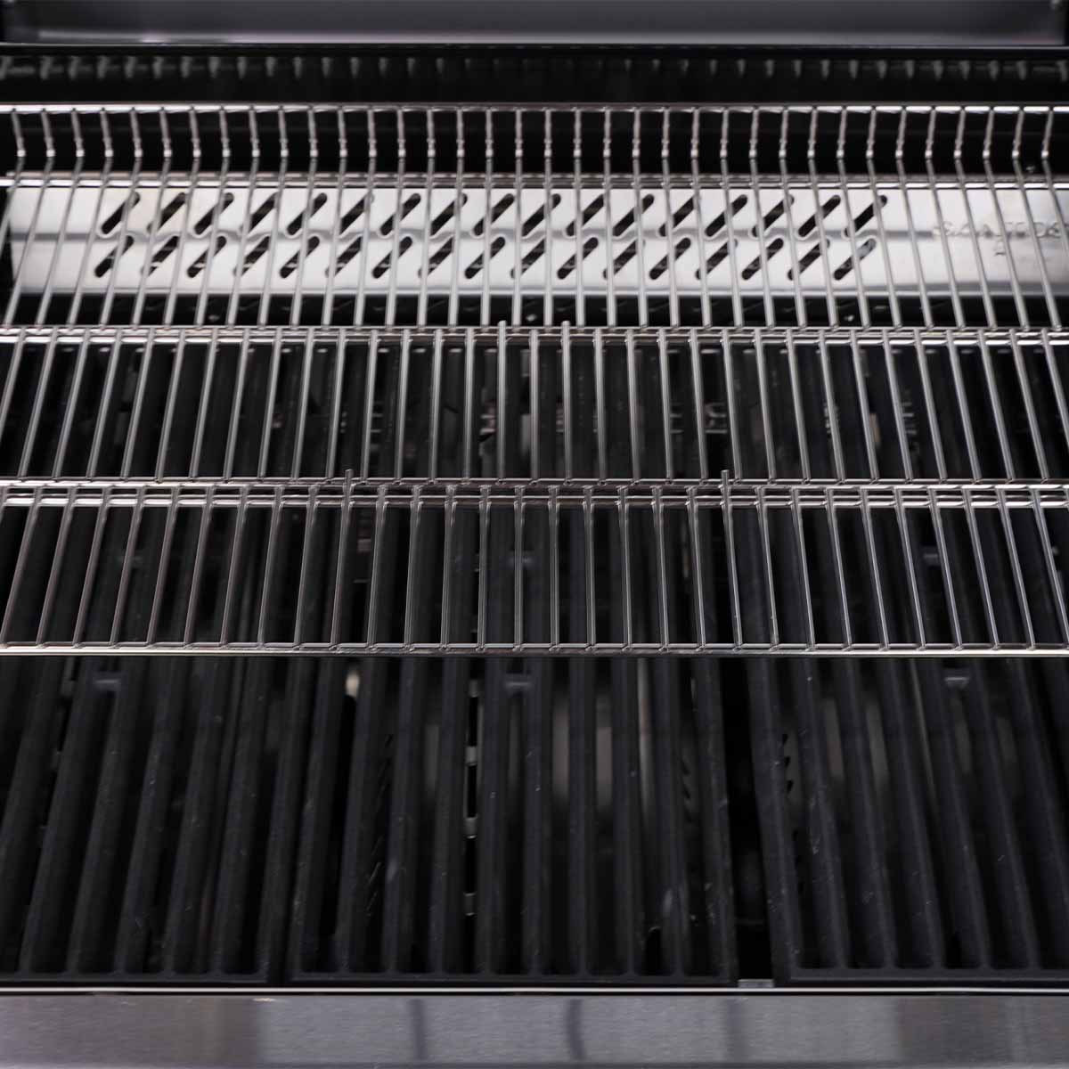 Die langlebigen Brennerabdeckungen aus Edelstahl funktionieren gleichzeitig als Schutz für die Brenner, damit durch heruntertropfende Fette und Säfte die Brennerdüsen nicht verstopfen sowie ungesunder Fettbrand vermieden wird. Weiterer Vorteil: Die auftreffenden Flüssigkeiten verdampfen und aromatisieren Euer Grillgut zusätzlich.