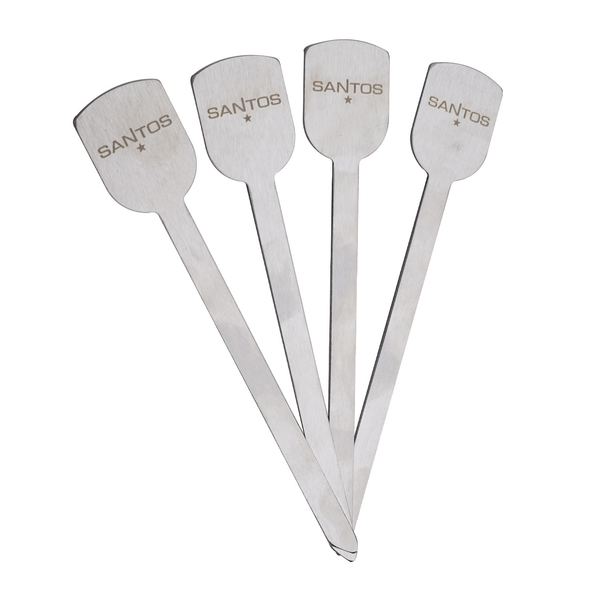 Da rutscht nix hin und her. Ob der Burger vornehm mit Messer und Gabel oder klassisch als Fingerfood verputzt wird – der Edelstahl Spieß hält alles an Ort, Stelle und in der richtigen Reihenfolge. Mit einer Spießlänge von 14,5 cm werden auch extra hoch gestapelte Burger im Zaum gehalten, das flache Design mit einer Breite von 1 cm verhindert nerviges Drehen der Zutaten. Die Spieße haben eine Gesamtlänge von 18,5 cm und als Hingucker die kultige SANTOS Logo-Prägung auf den Griffen. Komplett aus hochwertigem Edelstahl gefertigt.Die SANTOS Tipps für Smashed Burger: